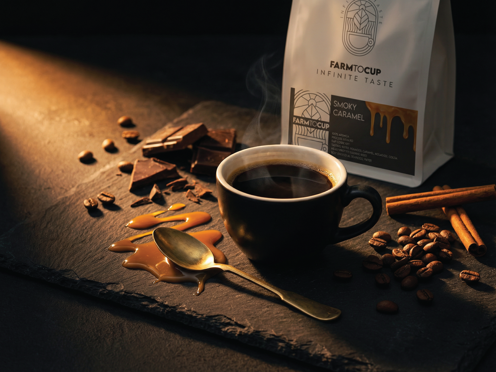 Dark, bold, and unapologetically indulgent — Smoky Caramel is an infused coffee with deep campfire warmth and rich caramel sweetness. Medium-dark roasted for a full-bodied cup with layers of tobacco leaf, molasses, and cocoa underneath, it’s built for anyone who likes their coffee with character. Smooth enough for milk, strong enough to stand alone.